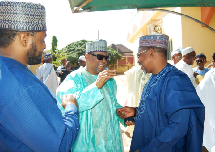 The Chairman, Rural Electrification Agency (REA), Hon Danlami Kurfi (right) and other dignitaries during the wedding fatiha of the daughter of His Excellency, Nigeria’s Ambassador to the United Arab Emirates (Dubai), Mohammed Dansatta-Rimi, at the Sultan Bello Mosque in Kaduna … on Saturday.