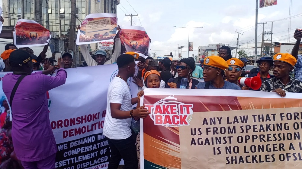 Protesters under the aegis of the Take-It-Back movement, on Monday, trooped to the streets in Lagos to march against what it described as bad governance and attacks on free speech in the country.