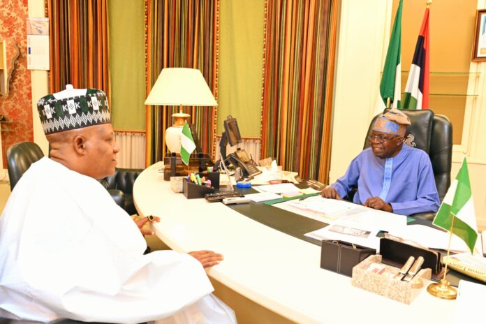 Vice President Kashim Shettima briefs President Bola Tinubu about the affairs of state and his trip to Sweden while the President was away on vacation. Monday, October 28, 2024.