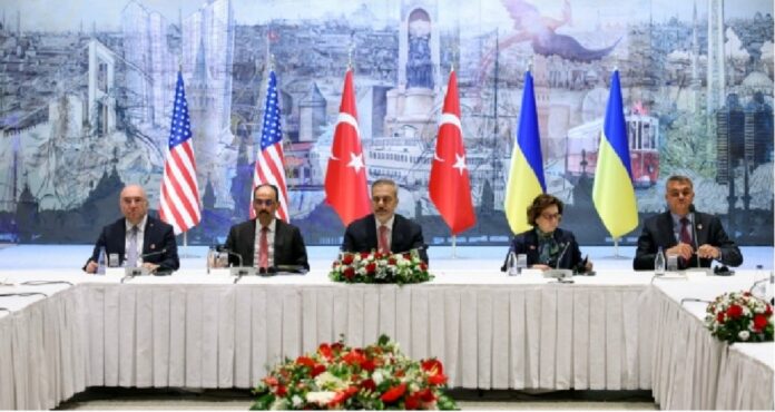Turkey’s Foreign Minister Hakan Fidan opened the meeting between Russian and Ukrainian delegations around 1:35 pm (1035 GMT) in Istanbul’s Dolmabahce Palace.