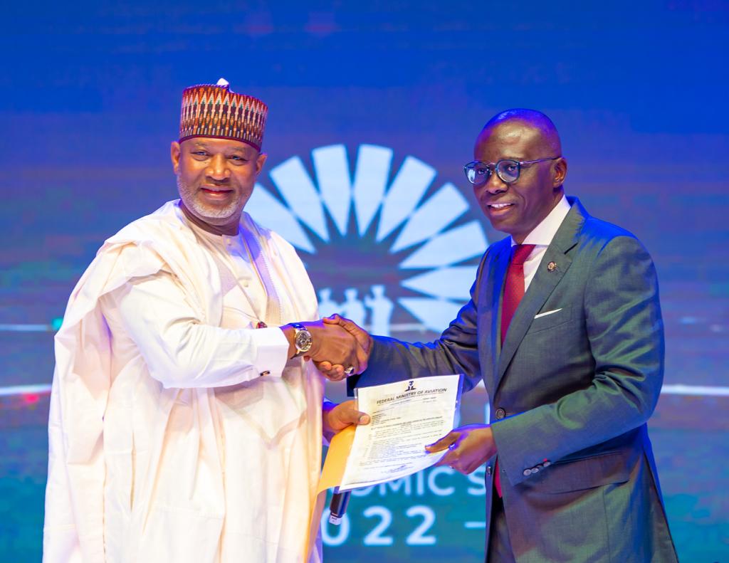 Minister for Aviation, Sen. Hadi Sirika, presented the document to the Governor on behalf of President Muhammadu Buhari at the ongoing Lagos Economic Summit (Ehingbeti) 2022 taking place at Eko Hotels and Suites, Victoria Island.