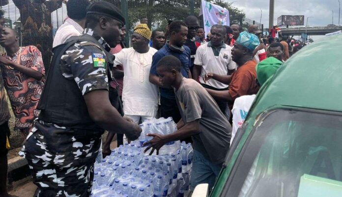 The protesters marched from Ikeja Under Bridge to Gani Fawehinmi Park, Ojota, where the state Commissioner of Police, Olanrewaju Ishola, provided water and snacks for them.