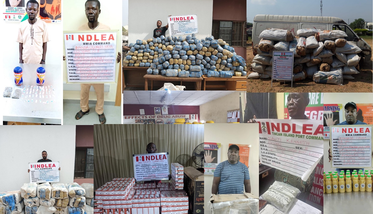 In his reaction to the latest arrests and seizures, Chairman/Chief Executive Officer of NDLEA, Brig. Gen. Buba Marwa (rtd), commended the officers and men of the MMIA, Tincan, Kano, Ondo, Imo and FCT commands for their vigilance, professionalism and robust working relationship with other security agencies in their areas of responsibility.