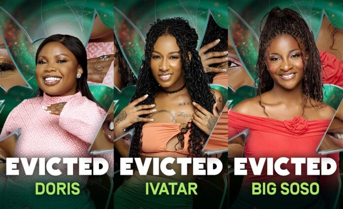 Three housemates, Big Soso, Ivatar, and Doris, have been evicted from the ongoing Big Brother Naija Season 10, leaving 19 contestants in the house out of the original 29.