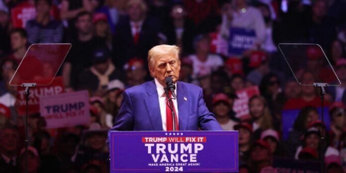 After being introduced by his wife, Melania Trump, in a rare public appearance, the former president began by asking the same questions he’s asked at the start of every recent rally: “Are you better off now than you were four years ago?” The crowd responded with a resounding “No!”