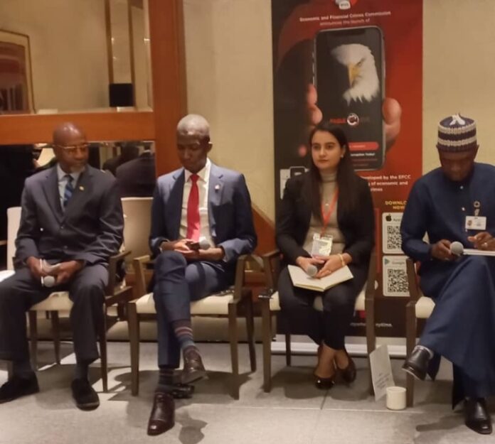 The EFCC’s boss spoke on a theme titled: “Food Security Response: Combating Illicit Financial Flows and Securing Asset Returns for Sustainable Development,” jointly organized by the EFCC and the African Union Development Agency–New Partnership for Africa’s Development/Africa Peer Review Mechanism (AUDA-NEPAD/APRM) Nigeria.