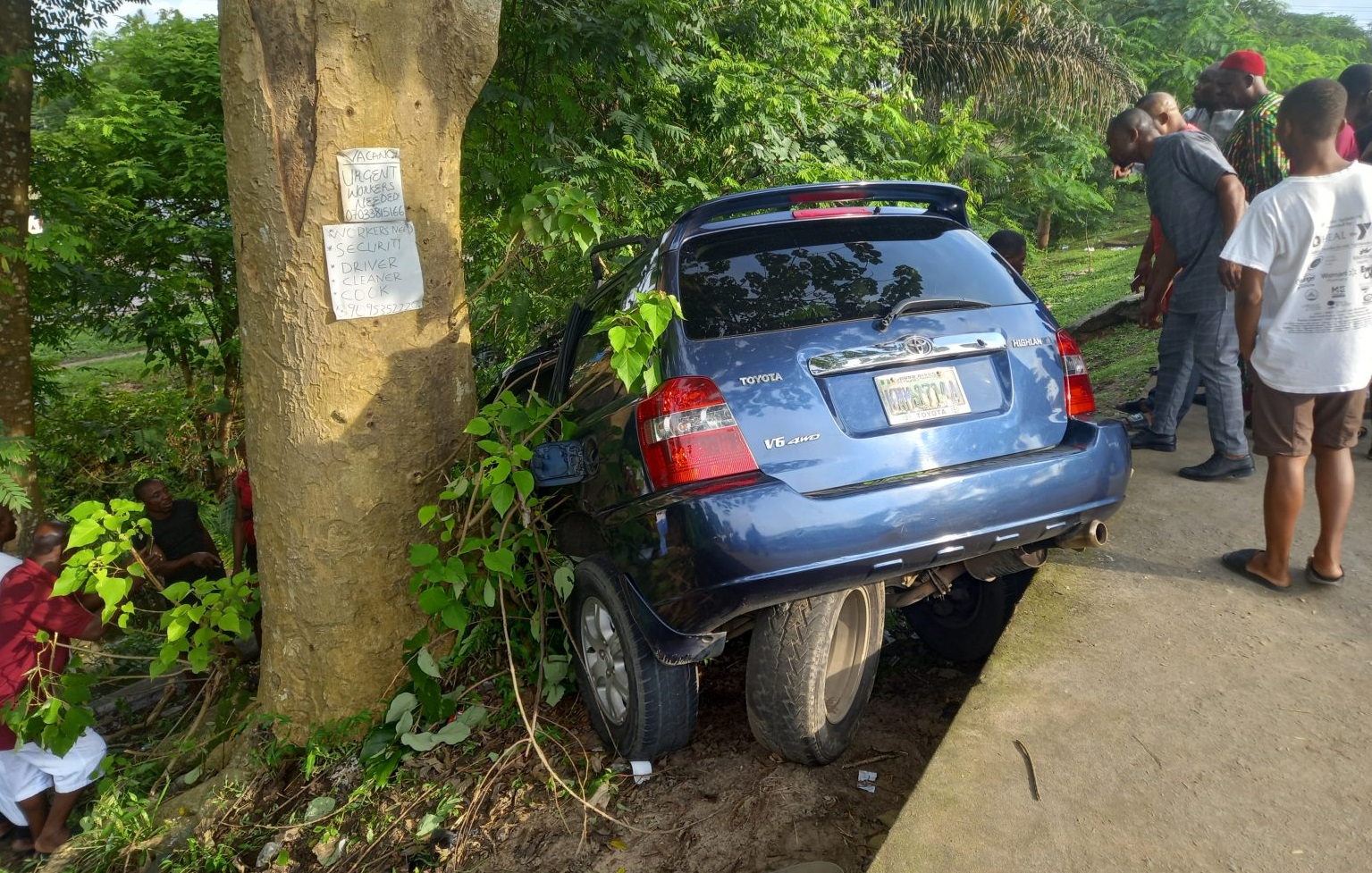 He said that the incident which occured on the Muritala Mohammed Road, saw the Toyota Highlander the woman was driving skid off the road into a ditch by the highway.